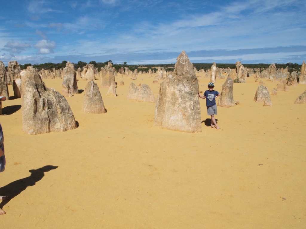 Sandy Point (close to Jurien Bay) is a good base for the Pinnacles just down the road and so the next day we headed out to visit this unusual amazing and beautiful Pinnacles. The Pinnacles are geological rock formations in the desert we spent a few hours looking at the beautiful puzzling formations. They are relatively young in geographical sense and there are two theories as to how they formed one being that they were sand between tree roots and the other is that the rock was trees. I think the first theory is more plausible given the rock is sandstone. Either way they were beautiful and usual site not like any other place I have seen. We all enjoyed them and played hide and seek.