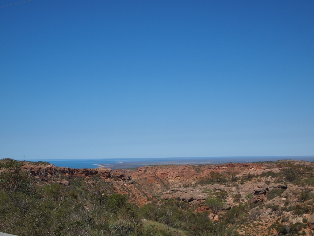 On the way to Cape Range we took a short side trip into Charles Knife Gorge to the Charles Knife gorge Lookout. At the start of the track it warns that you should not take caravans and when we reached the track we reailsed why – the road was a good unsealed road but it was a narrow and winding road with cliff edges and some parts where only one vehicle could pass. The drive was spectacular although were not impressed greatly with the lookout. We had timed the drive with our planned lunch stop and parked to enjoy spectacular views down into the gorges and out to the Exmouth Gulf.