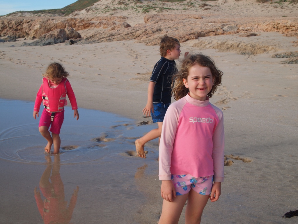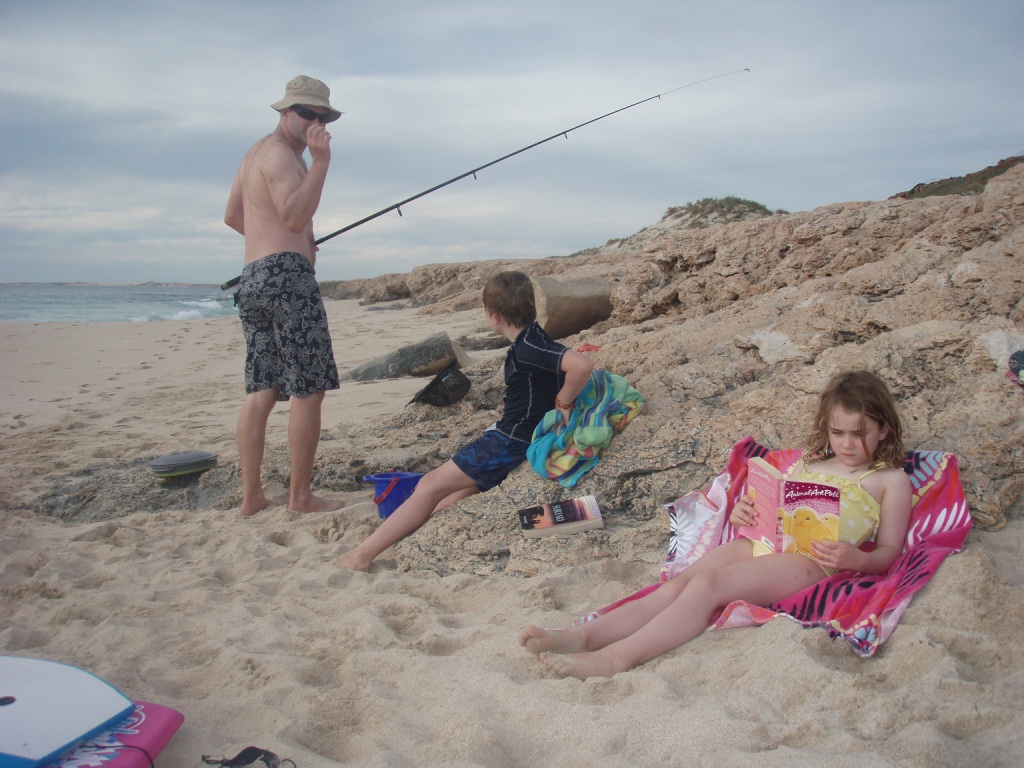 Bianca wanted to ride her bike with the big kids and asked for the training wheels to come off. Andrew took her on many a lap of he caravan park and she was doing a great job with much encouragement from both Aaron and Holly. We tried out luck with fishing on a beach just out side the marine park zone and we thought for certain we would catch one of the big snapper that we had been snorkelling with but somehow the big snapper seem to know where the marine park ends and they weren’t biting on our bait. Sunset fishing was still fun and beautiful.
