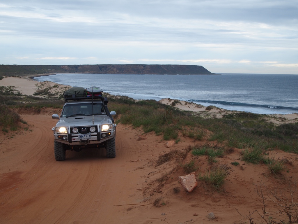 We were headed up the coast to Red Bluff on an easy unsealed road that follows along behind the sand dunes allowing on glimpses of the coast until we turned and headed up over a sand dune and we were greeted with this spectacular view of Red Bluff.
