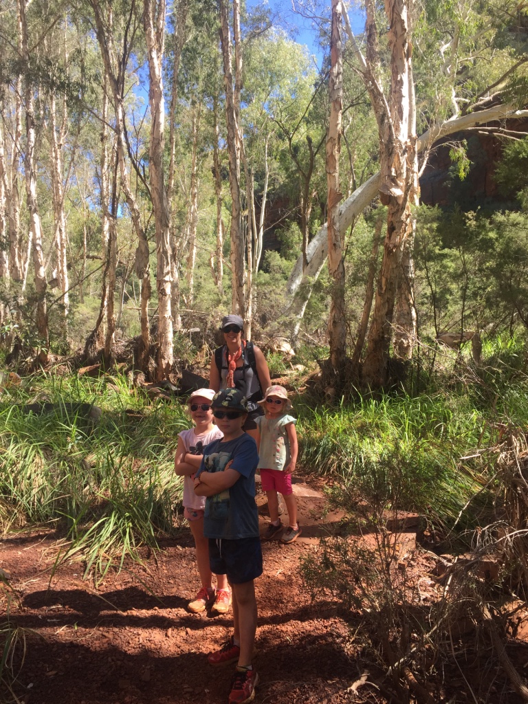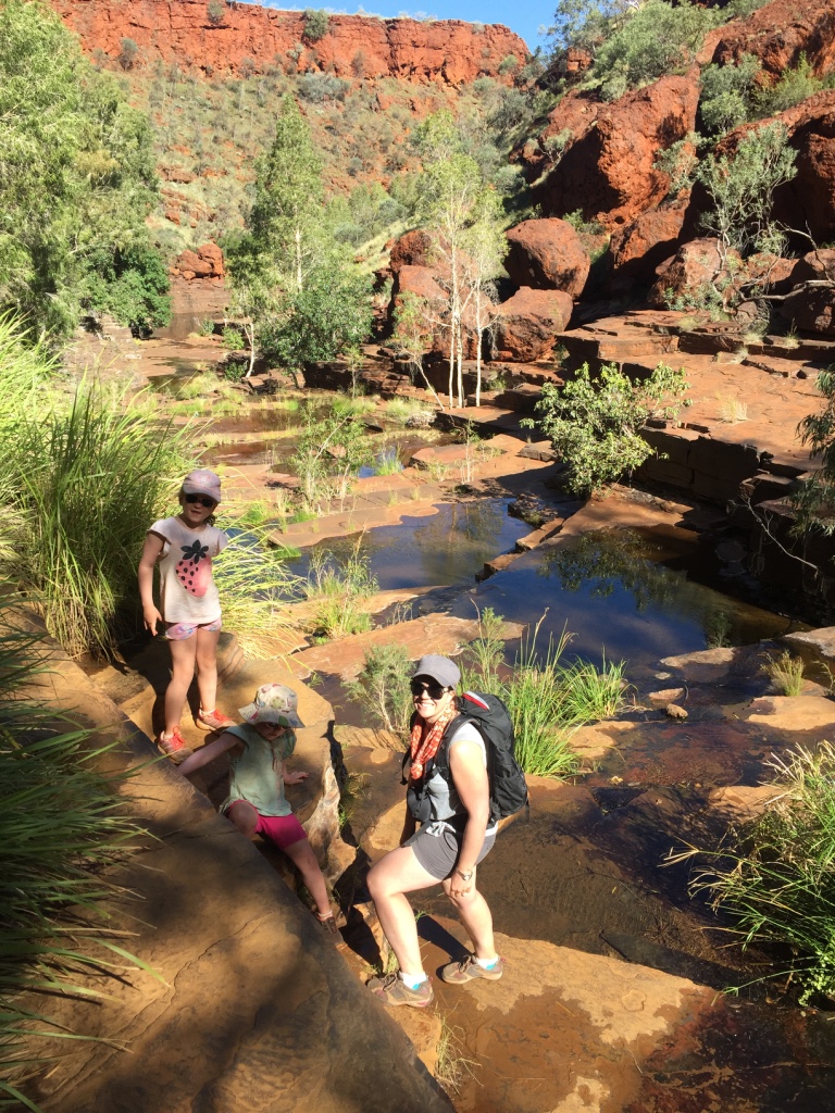 We were excited to arrive in the Pilbara after the gorgeous coast. When we arrived at Karijini we went to the information centre and booked our camping and we were told there had been two snake bites in the past week – so we were all on the alert for snakes. At the visitor centre they gave us kids information work books which had activities and information about the country and culture, animals and the gorges of Karijini – these were a great project for the kids.