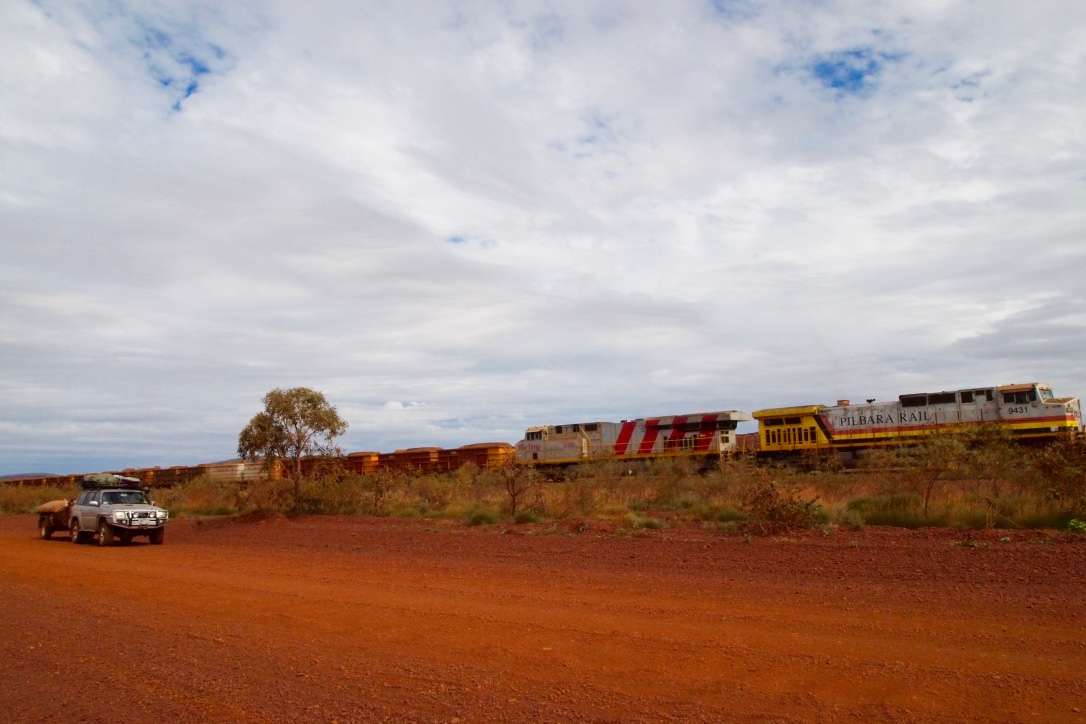 We saw eight different trains over three hours so despite the down turn in the ore exports there is still quite a lot of activity. In Tom Price talking to some locals the town has been feeling the reduction of industry and there were a number of people already made redundant with more redundancies expected. There is not much out here apart from tourism without the iron ore industry.