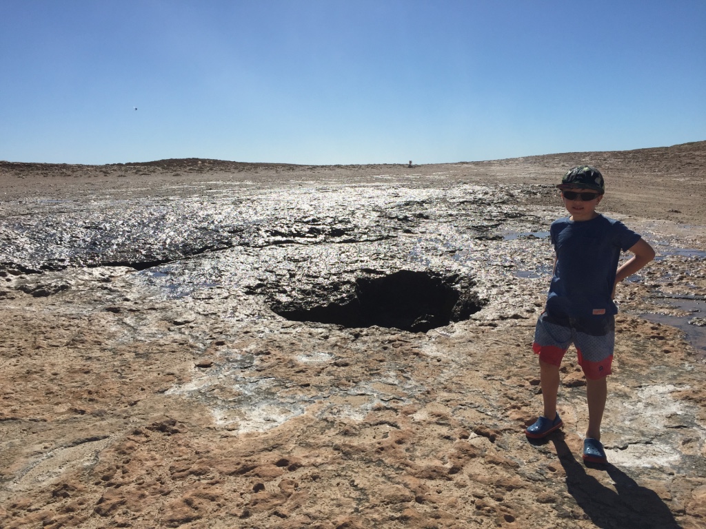 On the way out of the Francios Peron National park we visited an old historic wool farm which had the old shearing sheds and grounds for visitors to visit. the land is all now owned by the national parks but was a large wool farm for many generations. Whilst walking around Holly spotted a snake. This was the first snake that we have seen on our trip so far it was a baby so we were on the look out for the mummy snake. The old homestead has a hot pool with springs from the artesian basin but this was closed for maintenance. There were photos of ladies swimming at the pool in the 1940s.