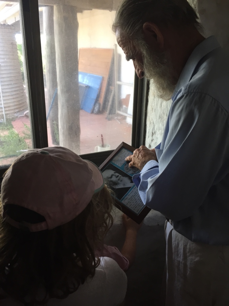 Next we headed into Denham for fresh bread a lunch stop. We stopped to look at the old Pearlers restaurant as suggested by our friend Tim. The restaurant was closed but the old building was made from amazing shelly rock. By chance we saw Tim at the front of his house only a couple of doors up the road. Tim had built the restaurant in 1977 and he and his wife ran the restaurant for many years. Tim again regaled us with stories and had the children listening intently, Tim showed us around his home that he also built back in the early 1980s it was an amazing home filled with treasure and a lifetime of stories. We were enjoying the stories and ended up spending almost two hours at his home.